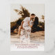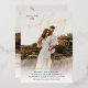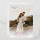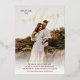 Simple and beautiful double sided two in one photo wedding invitation with your photo covering the wedding invite card. Join us for the wedding of is written at the top of the photo, with wedding in a beautiful calligraphy script printed in gold foil. Your names in gold foil too and the rest of the text in dark red. On the other side, add another photo and additional wedding information your guests will need.