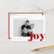 Merry Christmas | Invite guests to your event with this customisable Christmas postcard. It features JOY in bold typography. Personalise this modern holiday card by adding your details. This custom photo Christmas postcard is available in other colours and cardstock. Matching items are available.