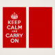 Red and white "Keep Calm and Carry On" modern version of classic poster.