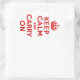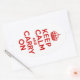 Red and white "Keep Calm and Carry On" modern version of classic poster. Red design on white rather than white design on red.