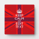 Red Keep Calm Have Your Text on Union Jack Flag Plaque