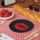 Red kissing lips form a pattern that might be made with lipstick. It’s something for your love on Valentine’s Day or any other time of the year you feel romantic.