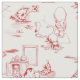 A delightful toile in red colours featuring playful kitty cats romping in a bathroom.