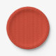 Red knitting wool texture background paper plate