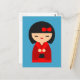 Cute Japanese Kokeshi traditional doll in red and blue design. Very cute Japanese theme
