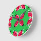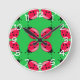Red ladybugs on a green background. This version of wall clock has a dial.