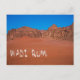 Comprised of two deserts, a white desert and a red desert, Wadi Rum is an incredible adventure travel destination in Jordan. In this postcard, the red sands and sandy mountains stand out against the blue sky. Wadi Rum has been the setting for many movies, often standing in as Mars. This postcard is fully customisable.
