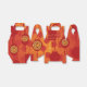 Red and orange silhouettes of various Chinese Lanterns as background + Golden vertical Chinese wishes + Happy New Year in English + small golden paper-cut of a horse on a red lanterns. You can delete this small image if you want to use the design for all Chinese New Years. Design on party gable favor box. Matching greeting card, horizontal holiday postcard, sticker and more. Perfect for Chinese New Year of the Horse 2026.