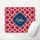 Red Lattice Pattern Navy Monogram Mouse Mat