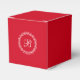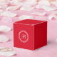 A personalised favour box in red featuring a white laurel wreath and custom monogram that you can edit with your own monogram. To change the font or if you need to re-centre the monogram after changing it, select the "customise it" button. This favour box makes a nice choice for receptions, parties, corporate events, and more.