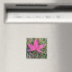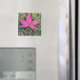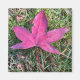 A 2 inch , Square Magnet, With a Picture, of a Red Leaf, Lying on the Ground, on it.
