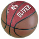 Custom Red Leather Print Player Name Team Number Basketball. Personalise it with your team name, number and player name. The design has a red leather print - the leather details are simulated on the design. A great keepsake to remember your favourite sport. A perfect gift for basketball players, teammates, coaches,...