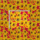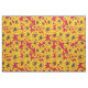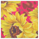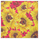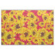 fabric printed with red leopard print and scattered yellow sunflowers, perfect for crafting, home decor, and apparel.