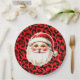 Red Leopard Print Retro Santa Claus Christmas Paper Plate
