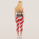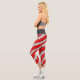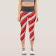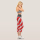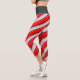 This leggings design features a pattern of stripes having colors like red, light gray, and black.