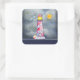 Stickers with a whimsical red-striped lighthouse and a colourful beach ball resting against its wall. A grey seagull flies off in the distance. A yellow star smiles happily in the sky. Billowing stormy clouds rising from the background. All done in watercolors.