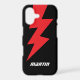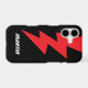 Red lightning bolt flash logo personalized iPhone 17 case . Personalize with custom name or monogram. Colors can be changed. Cool thunderbolt design.