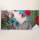 Red Lips and Roses Peacock Abstract Beach Towel
