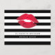 Red Lips Black White Stripes Modern Makeup Artist Postcard.