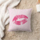 Red Lips Over Light Pink Floral Damask Pattern Cushion