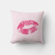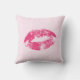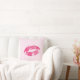 Cute red lips over light pink floral damask background. Customisable throw pillow template