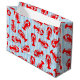 Red Lobster Animal Pattern on Blue Stripes Large Gift Bag