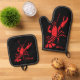 Red lobster logo personalised kitchen oven mitt & pot holder set