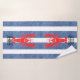 Red Lobster on Blue White Denim Stripes Bath Towel