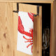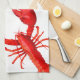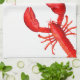 Nautical, summer and sea food theme. A red lobster on a white background. Red hand lettered style script and the curved text: Hello Summer! Template for a name. Perfect for a beach house or summer home!