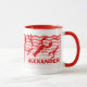Customise this fun mug with any name! A pod of red lobsters float in a sea of red waves that go from dark lobster-red to a pink-red. There are large red lobsters, and small red lobsters and in-between sized red lobsters floating in a sea of red waves, a simple design that's great fun for kids (or grown-ups!). ()