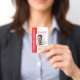 Bright red and white facility entry badge with bold vertical text is ideal for department specific clearance. Easily upload multiple logos and an employee photo. This can hang on a matching lanyard that also holds a company key card. This company badge is versatile for red, white and grey company lanyards. Perfect for engineering, healthcare, or law enforcement facilities where staff identification is important. Perfect for government buildings where employees have different clearances.