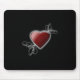 Red Love Heart Glowing Against Midnight Black Mouse Mat