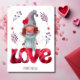 Red Love With Watercolor Lady Gnome Valentine Holiday Card