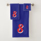 Red Lucky Number Eight on Blue Bath Towel Set
