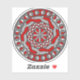 This concentric circle mandala design contains layers of geometric patterns that resemble gears that you might find in modern or even alien machinery, in shades of red and grey.