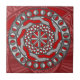 This concentric circle design contains layers of geometric patterns that resemble gears that you might find in modern or even alien machinery, in shades of red and grey. This tile can be framed to create a trivet or placed inside a wooden gift box. Tiles without a frame will also fit inside the gift box to create a matching set.