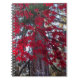 A personal sized, spiral bound notebook that features the photo image of branches of fiery, red Maple leaves with a Giant Sequoia tree in the background. Use as a journal or to keep important notes.