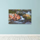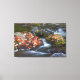 Red maple leaves carpet the rocks in the canvas print