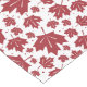 Autumn patterned tablecloth takes its inspiration from the Canadian flag, with an allover pattern of deep brick red maple leaves on a white background.