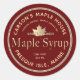 Simple and Elegant Round Red Maple Syrup Label with the words "Maple Syrup" in an embossed metallic gold font. Triple line border in gold. GOLD maple leaf and text.
