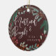 Rustic Christmas ornament featuring hand drawn illustration of winter botanical with typography text that says "married and bright." You can add your picture on the back of the product. Great for newlyweds celebrating their first Christmas as husband and wife. Background is red.