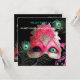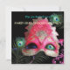 RED MASK WITH PEACOCK FEATHERS MASQUERADE PARTY INVITATION