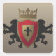 Mediaeval Lion Heraldry Stickers. A Coat of Arms design featuring twin lions, a shield, a crown, and a flir-de-lis. All of which were very symbolic during the mediaeval ages in Europe. Heraldry had depictions of powerful creatures, such as lions, dragons, and griffins, on their armour and weapons. It was a way to identify combatants on the battlefield.