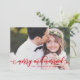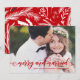 Spread holiday cheer with this elegant wedding holiday card. This flat card features red modern calligraphy quote "merry and married" with holiday floral accents background. The perfect holiday card for newlyweds. A postcard and folded card version are available.