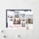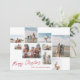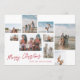 Modern Custom Text Red Merry Christmas 9 Photo Collage Holiday Card. This trendy card includes a photo collage of 9 family photos on the front with custom text and background.