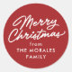 Red Merry Christmas casual script holiday gift Classic Round Sticker