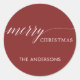 Modern holiday red sticker with the words “Merry Christmas”. Personalised this by adding your own text.
