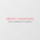 A sleek, minimal vinyl window cling decal featuring the phrase "Merry Christmas" in elegant red typography on a clear background. Easily customisable text adds a personal touch to this modern, minimalist Christmas design, perfect for making a statement this holiday season!