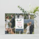 Photo collage thank you wedding card to say thank you and wish your wedding guests merry Christmas. Personalize by uploading six of your own wonderful wedding photos to the front of the card. On the back, you can write a thank you message and wishes for the holidays and new year by hand above a mistletoe divider, with love in a swirly script, and then your names printed. Christmas themed wedding thank you card with mistletoe twig illustrations and Merry and Married in red fonts.
