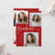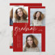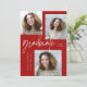 Red Modern Calligraphy Five Photo Graduation Party Invitation features three photos on the front, along with two photos and your graduation party details on the back.